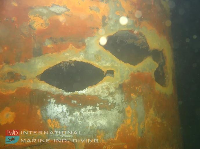 Corrosion of existing steel piles without any protection after 15 years. Drastic corrosion causing holes especially in the splash zones.